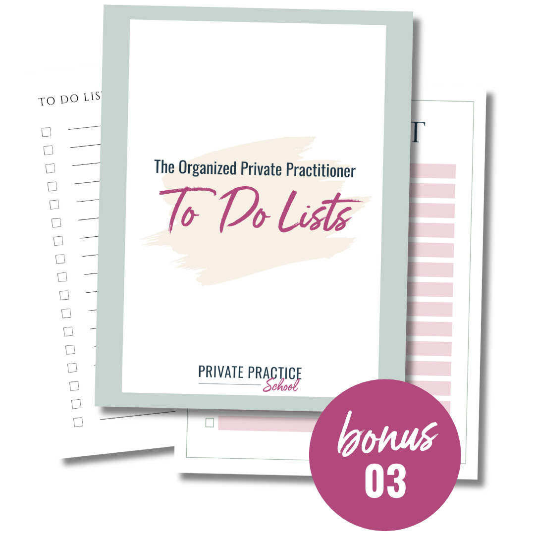 - The Organized Private Practitioner To-Do Lists (a $197 value)