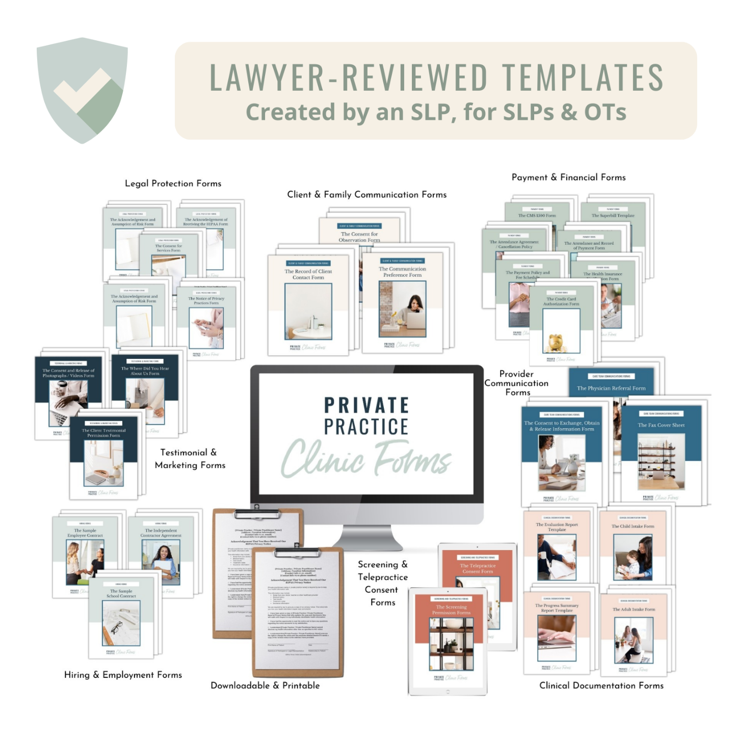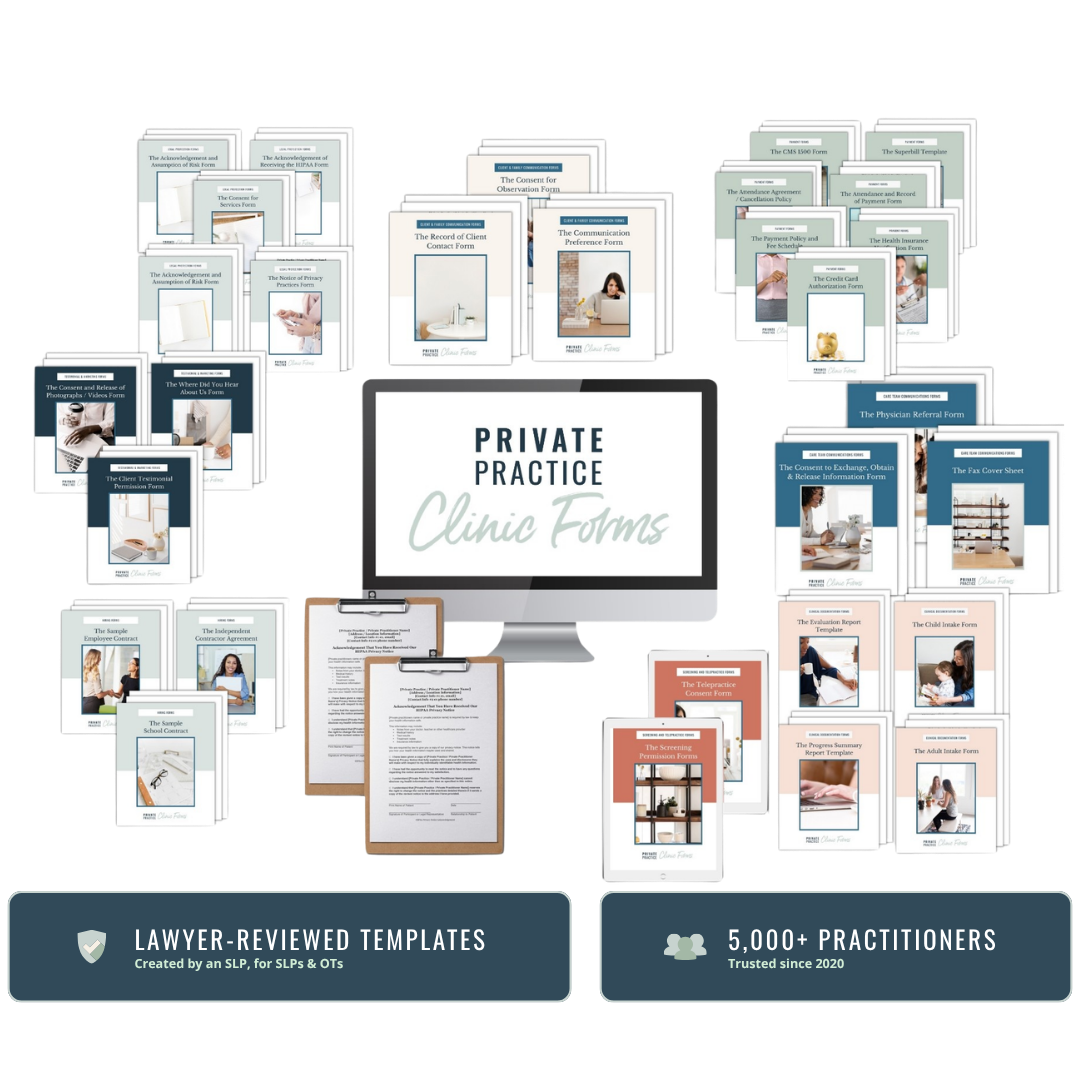 So I decided to team up with a lawyer to create dozens of forms for SLPs and OTs that are starting their private practice and need to add a layer of legal protection.