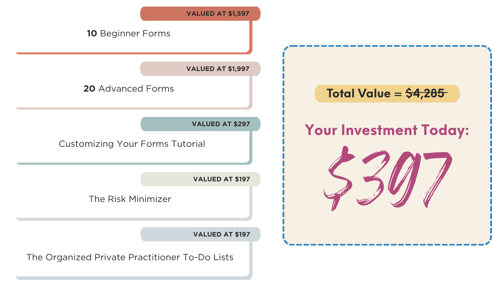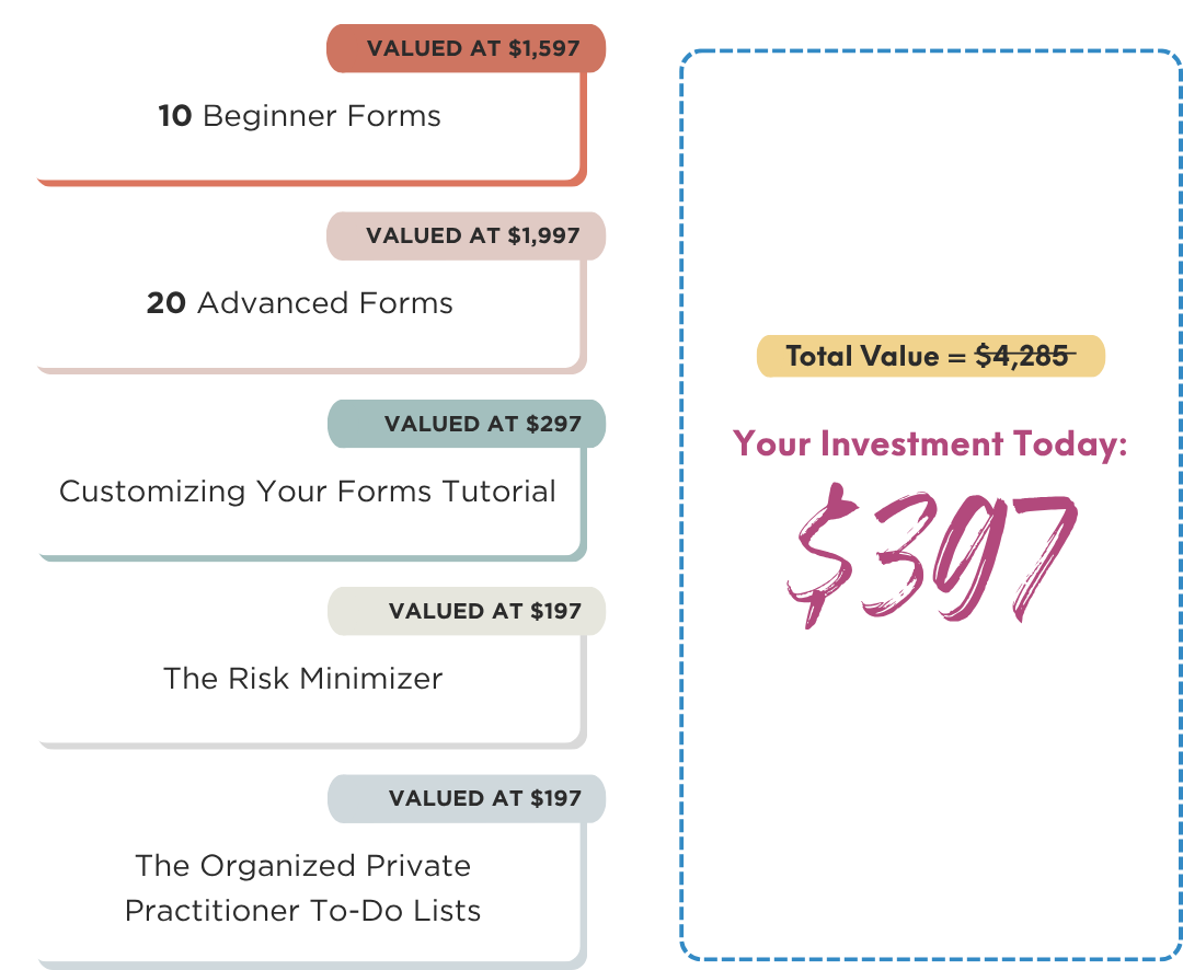 When you purchase The Private Practice Clinic Forms right now, you’ll get instant access to: