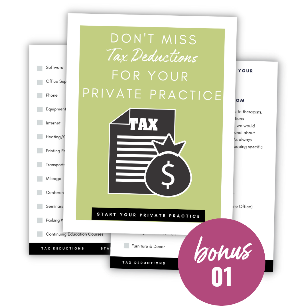 When we discuss income goals for private practice owners, it’s important to remember that the numbers discussed are often “pre-tax” income numbers. You are taxed on the profit your business generates. If you have legitimate business expenses, it can lower your tax burden. This list includes some of the most common tax deductions for private practitioners.